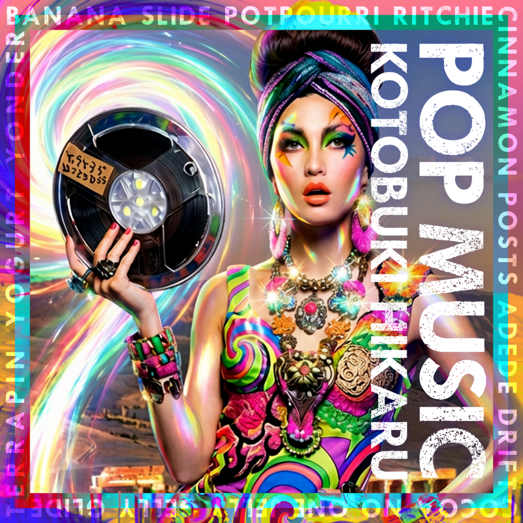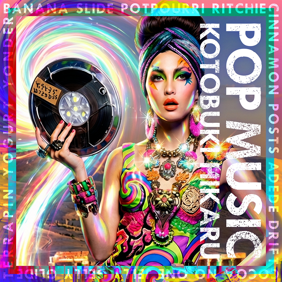 | J-Popの真ん中にことぶき光が投入するパワー・ポップ10曲、すべてのパーツが精密にデザインされた上でOver Driveされている。 エネルギーを、もっとエネルギーを! 心の若者たちを解放しエンパワーする、REBEL MUSICを聴け! – 横川理彦 – まずはことぶきさんの独自でポップな印象を与える音で始まるがそこから謎が深まっていく。 それは本当なのか嘘なのか、人なのか人じゃないのかわからなくなって、いつの間にか音に没頭してしまう。現実を非現実的に表現する天才なのでしょうか。 世の中にこの素晴らしい音楽で目を覚まして頂きましょう。 – 福助。– 昨年のプノンペンモデルに続き、今回はソロアルバムのマスタリング依頼を受けました。 乱暴さと緻密さが同居する非常に稀なサウンド。是非! – 砂原良徳 – かつて“コンピューターは音楽家の敵か否か”という論争が繰り広げられ、しばらくした後、音楽家はコンピューターを飼い慣らした。 そして現在、“AIは音楽家の敵か否か”という論争が真っ盛りで、今のところAIが音楽家を駆逐せんばかりの勢いだ。そんな中、突如ドロップされたことぶき光のソロアルバム『ポップミュージック』。 彼こそがAIを飼い慣らすことのできる救世主なのでは!? そう、人間が退場するのはまだ早過ぎるのだ。 – 國崎 晋 – ことぶき光がPotpouriをコケにしてノシ上がろうとしているので オマエタチもイイ感じで行け! – 平沢 進 – 去年に出した理論書『ポップミュージックの方法』の実践編。「ポプリ」もシド・バレットも出てくる。マティスのような原色使いはプノンペンモデルの前作の続き。下方倍音の豊かな響きが地響きのように体を震わす。非西欧圏のスケール、アフリカ原色部族のアートワークに騙されるけど、「ポップ」に仕組まれた覚悟は凄いよ。サカナクションより売れるかもしれない。シナモンの樹皮から染み出す麻薬に、バナナ、ココア、ヨーグルトを攪拌させた劇薬的一作。 – 田中雄二(FLIP-FLOP) – |